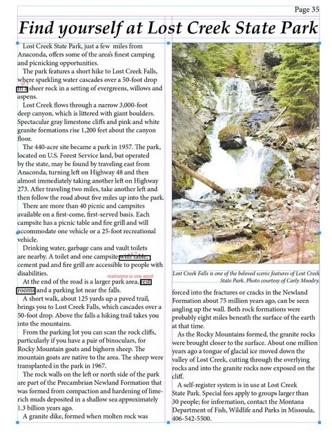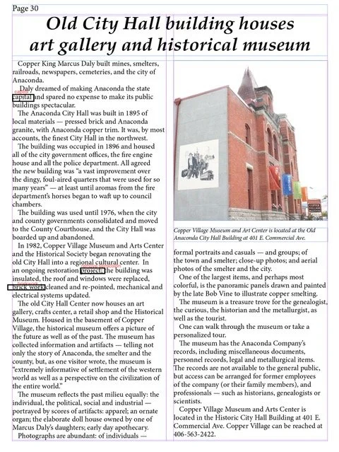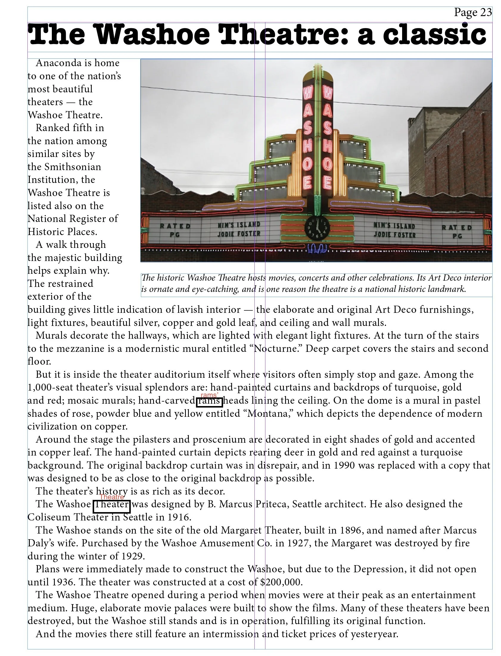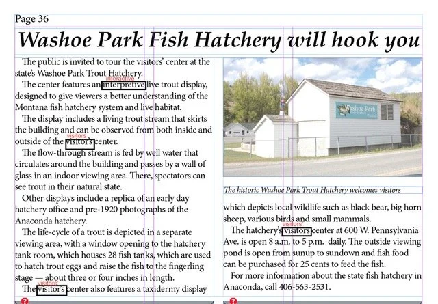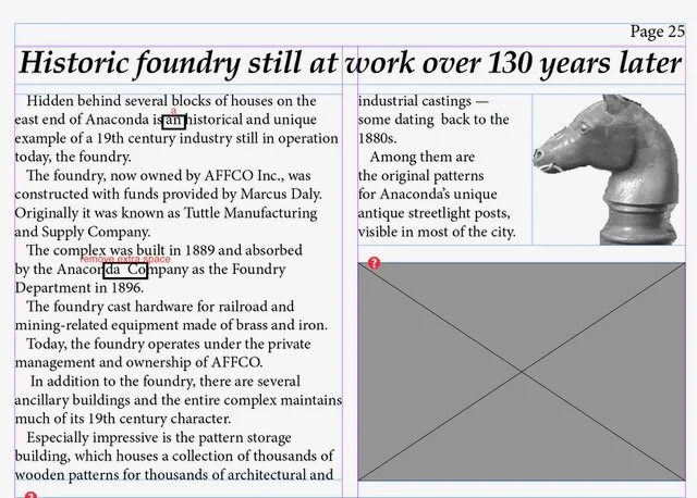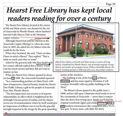 I caught that the body text was supposed to be two columns instead of one, making sure the formatting was consistent across pages.